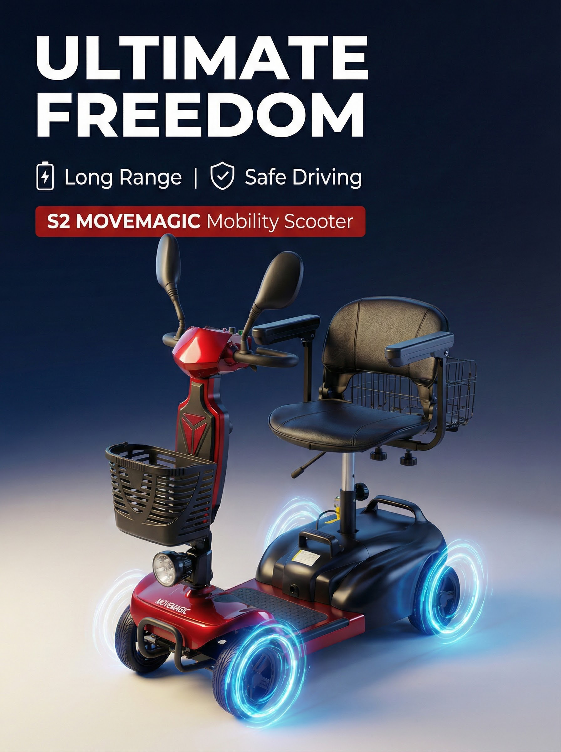 Reinforced Front Bumper, Anti-Slip Rear Wheels, LED Headlights & 0.5s Emergency Stop Electromagnetic Brake System